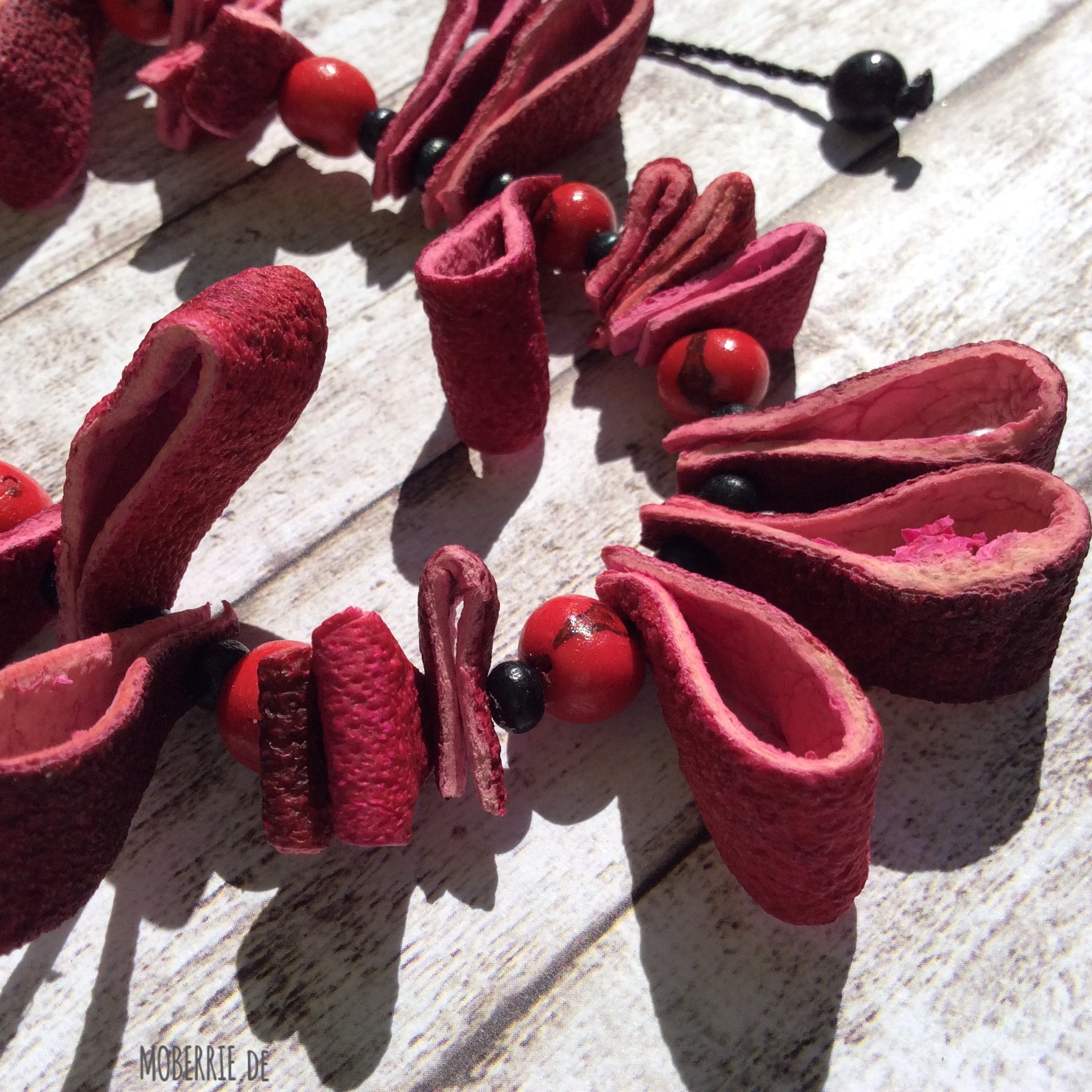Diese Hübsche Halskette mit herrlichem Duft, besteht Überwiegend aus CitrusFruchtschalen, aber auch Aziasamen, sowie weitere tropische Samen oder Palmenfasern.